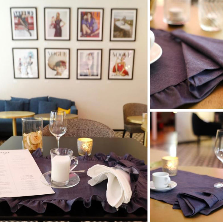 Individual com bolsa para guardanapo e folho a toda a volta.