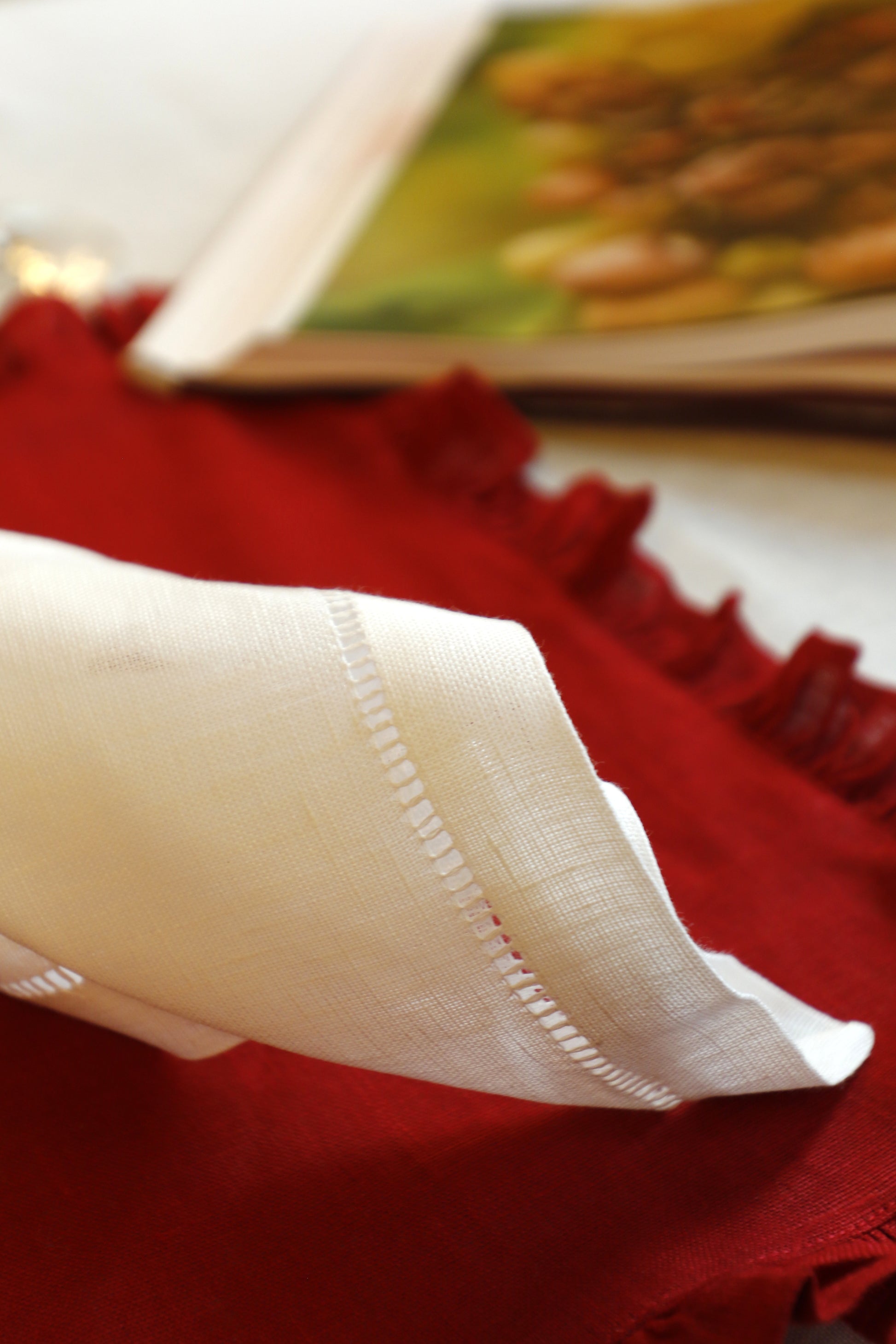 Realce a beleza da sua mesa com os nossos guardanapos bainha aberta manual, um símbolo de simplicidade e tradição artesanal. O delicado guardanapo confere leveza e requinte, transformando cada refeição numa experiência mais especial.