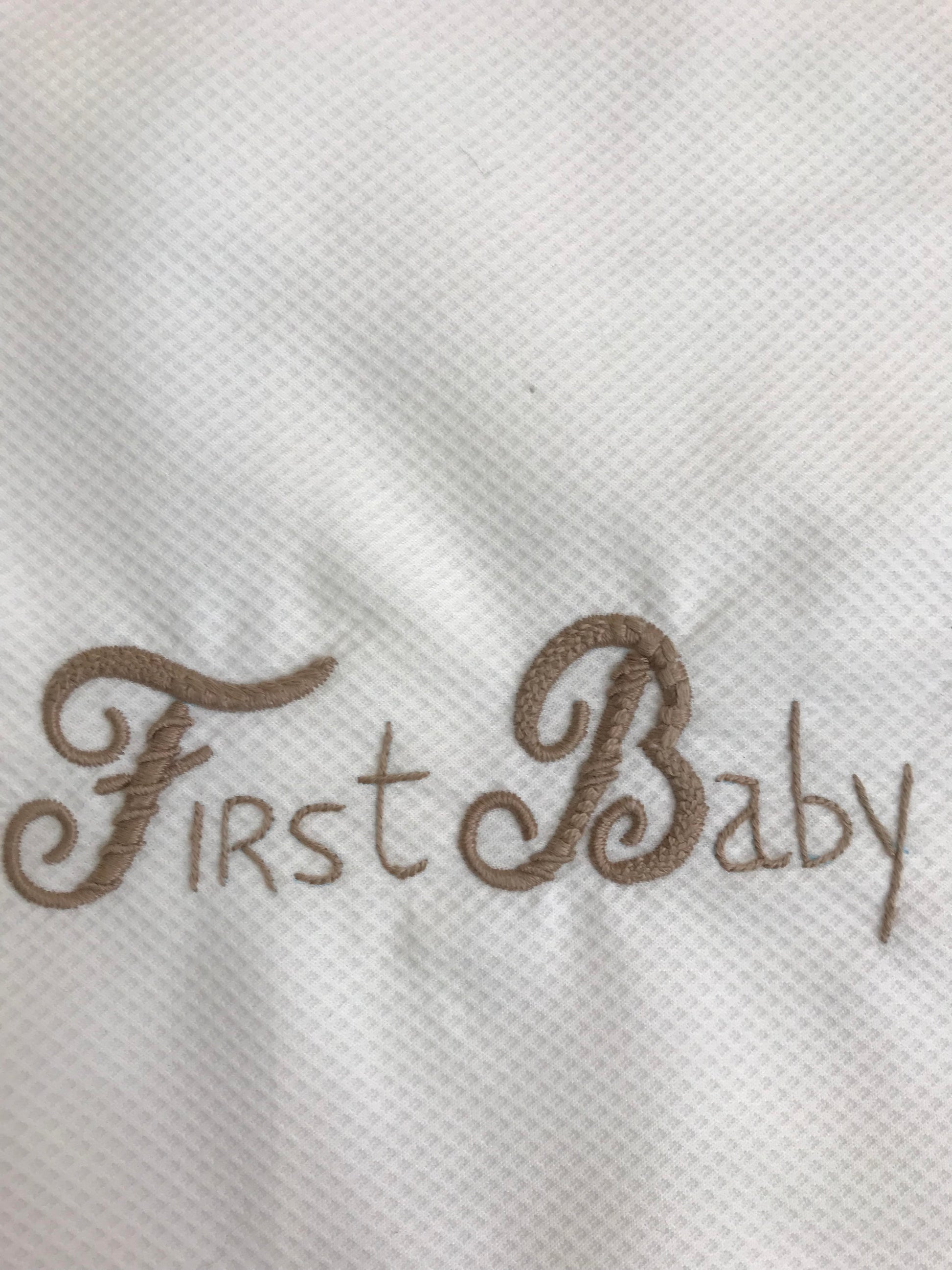 Saco bordado á mão em piquet para a primeira roupinha do bebe.