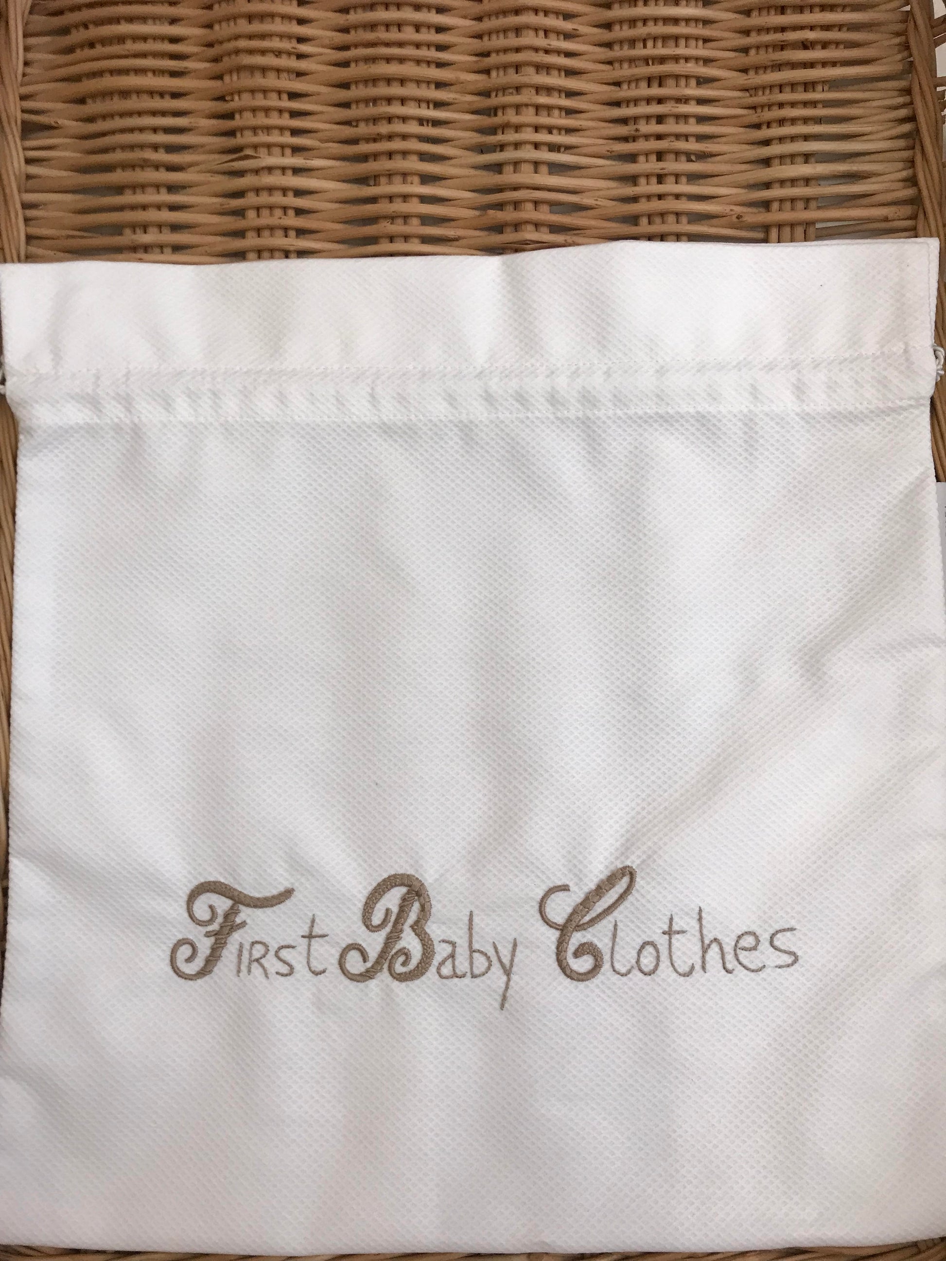 Saco da Primeira Roupa do Bebe Bordado à Mão