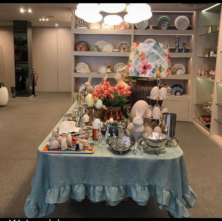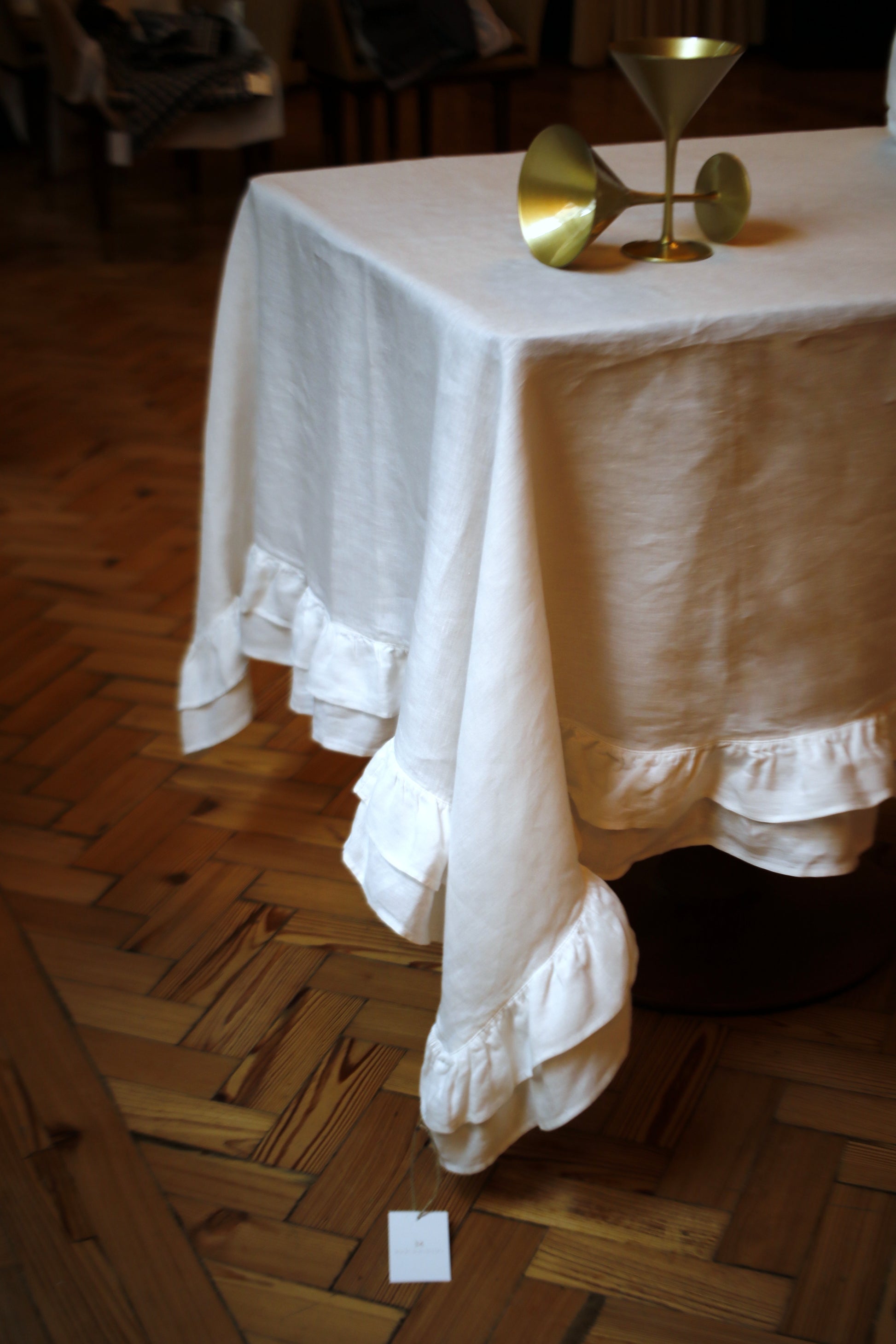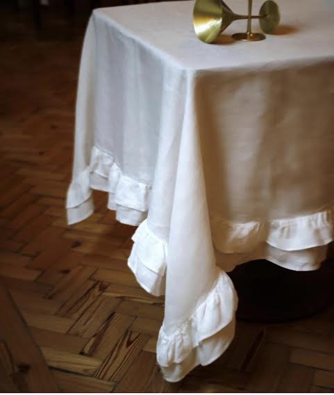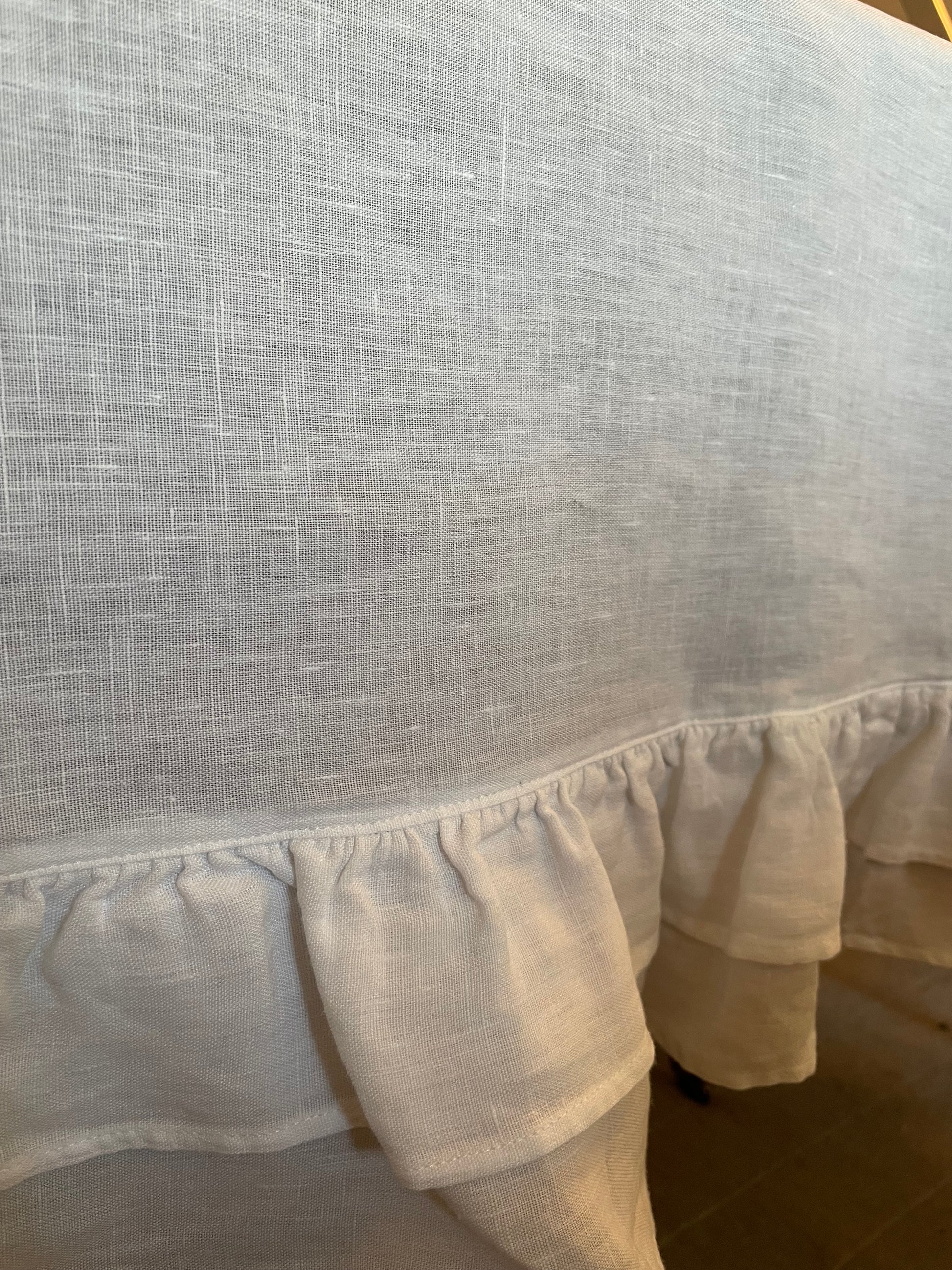Protagonista de qualquer mesa: toalha em linho certificado com dois folhos, pensada para quem aprecia volume e um requinte verdadeiramente especial.